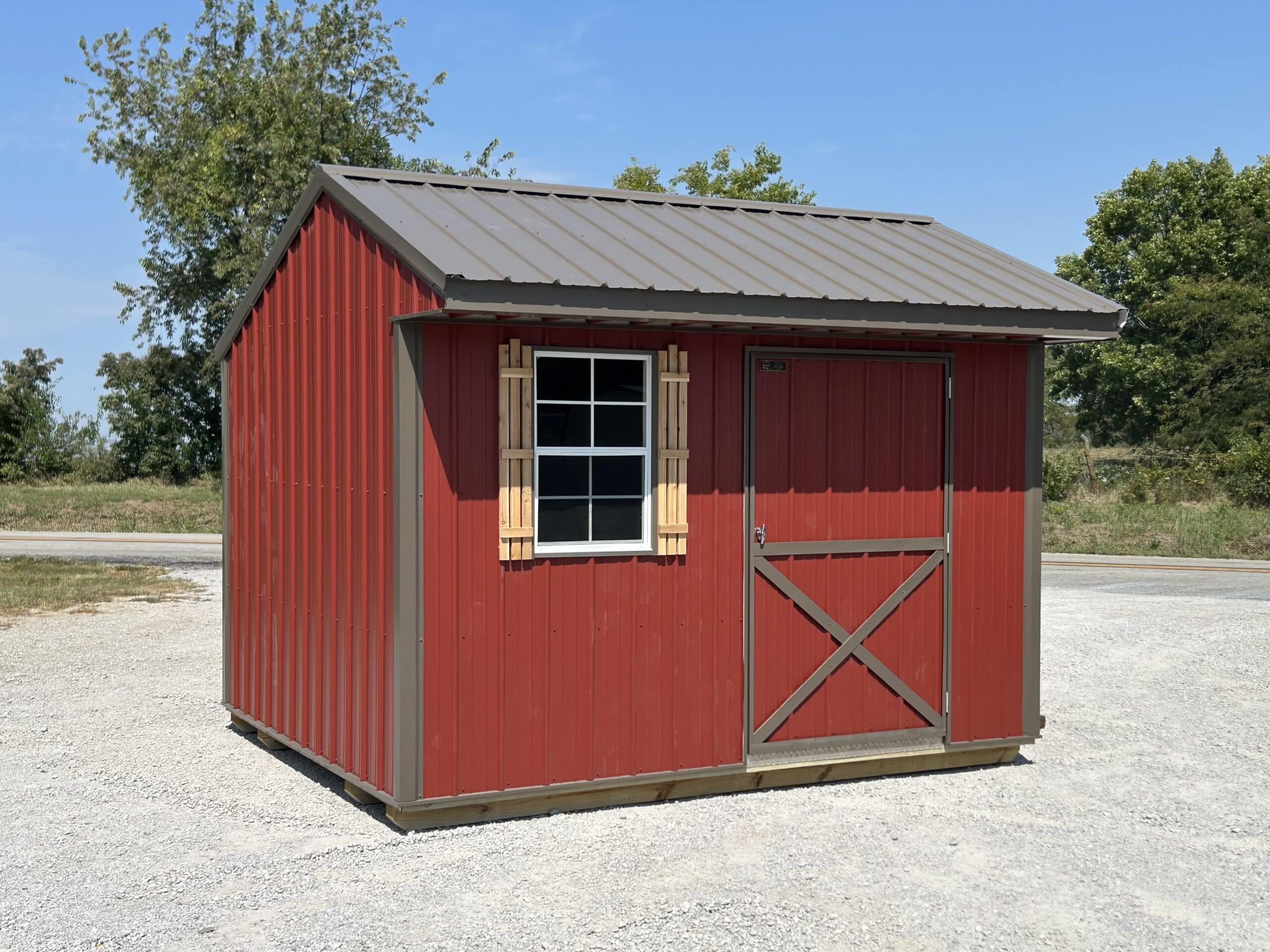 This 10×12 Garden Shed features a 48″ Single door and 1 Window with Cedar Shutters! Additionally it comes with a 20″ overhang for added style and protection!