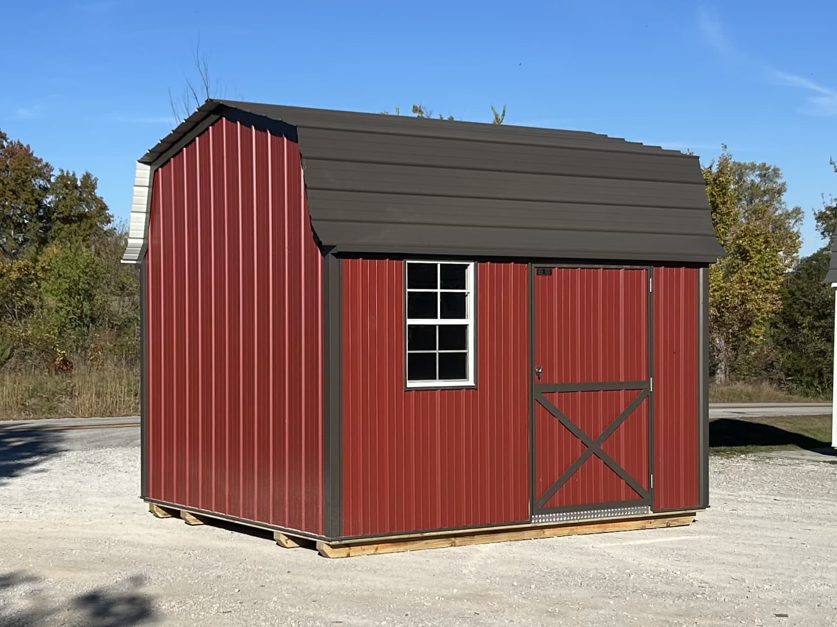 This 10×12 Lofted Barn comes equipped with a Single 48″ door and 1 window. 2 Lofts make storage easy!